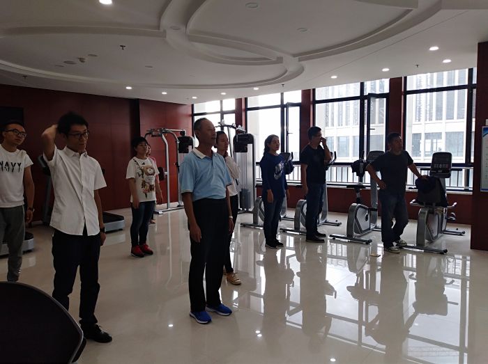 9月6日上午8時30分,激情洋溢的樂曲準(zhǔn)時在城發(fā)集團19樓健身房響起,城發(fā)公司的20余名干部職工隨著鏗鏘有力的節(jié)拍,舒展身姿,精神抖擻地跳起了健身操。這是城發(fā)公司工會為備戰(zhàn)市工間操比賽作的一次賽前集訓(xùn)。